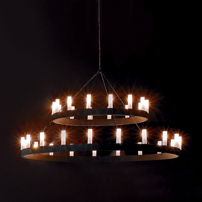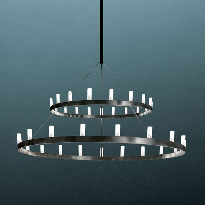 由David chipperfield为FontanaArte设计的吊灯受Arthur国王的王冠启发。它有两种颜色可供选择,带有两个同心圆或者单一版本。