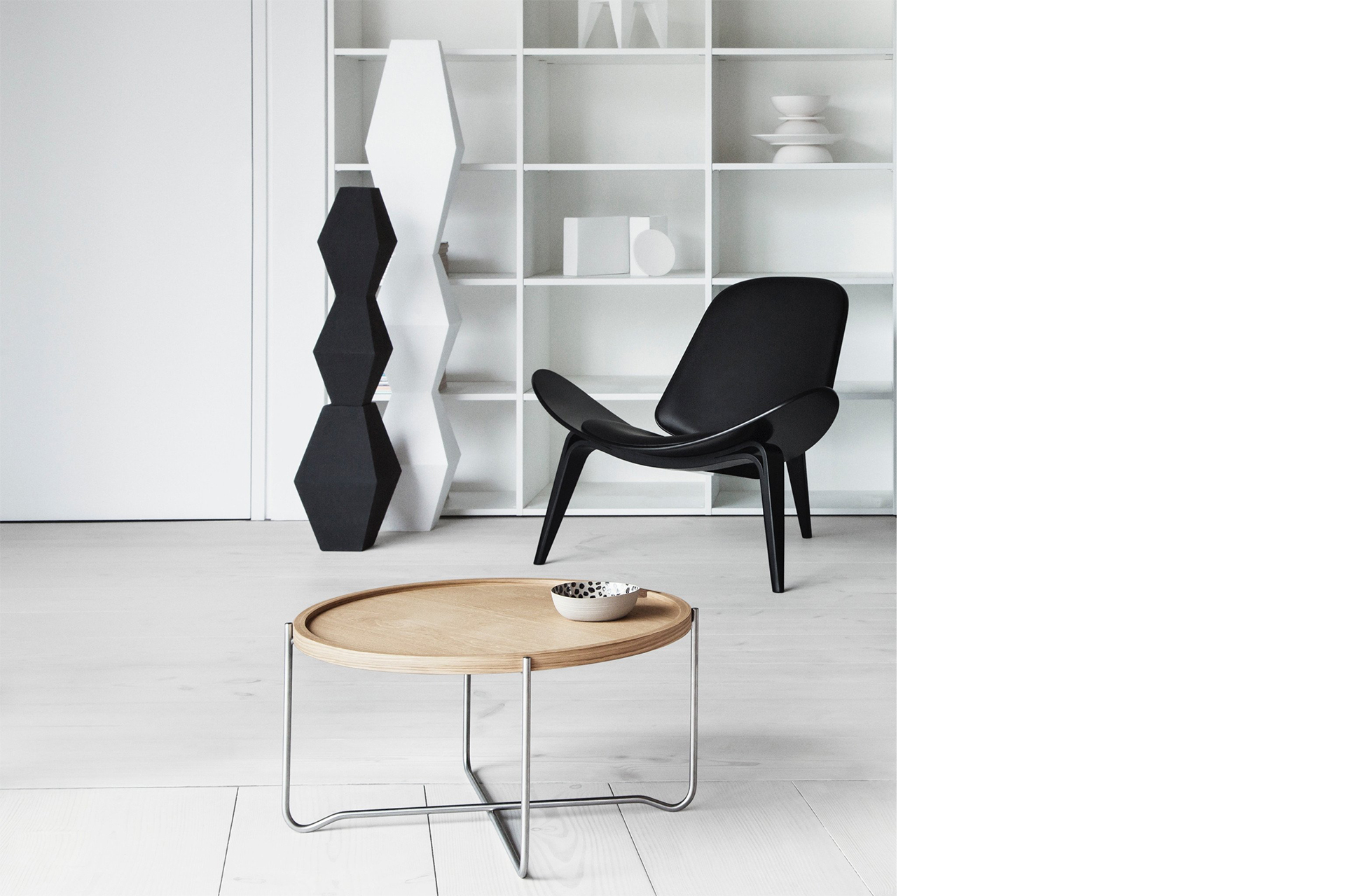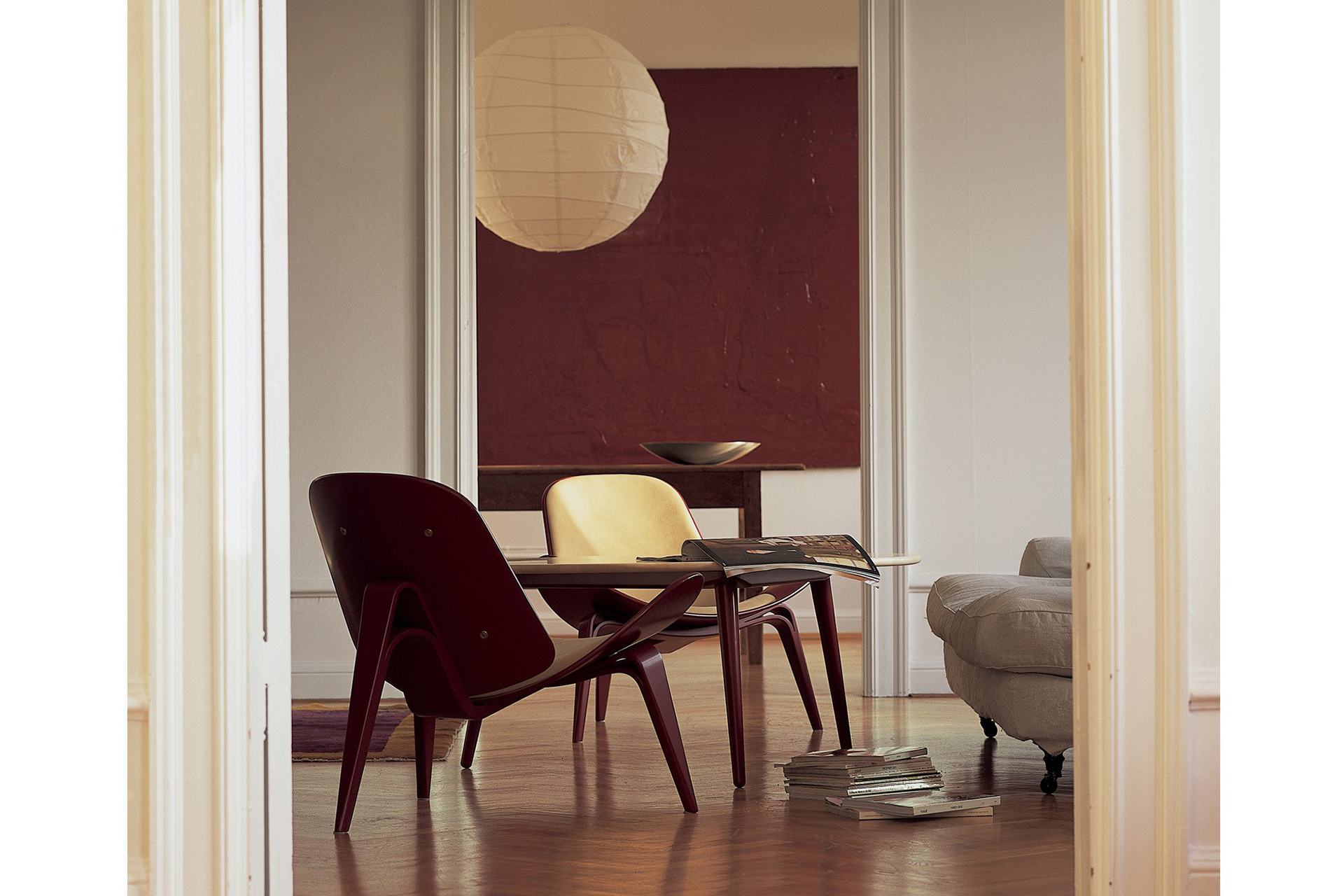 Hans J. Wegner于1963年为Carl Hansen & Son设计的贝壳椅是最值得珍藏的座椅之一,简约又不失大方,两侧的翼状包覆扶手和弯曲支撑脚,尽管只有三脚作支撑,却坚固耐久。主体由层压夹板塑形,座垫和靠背可选择布料或皮革软垫。