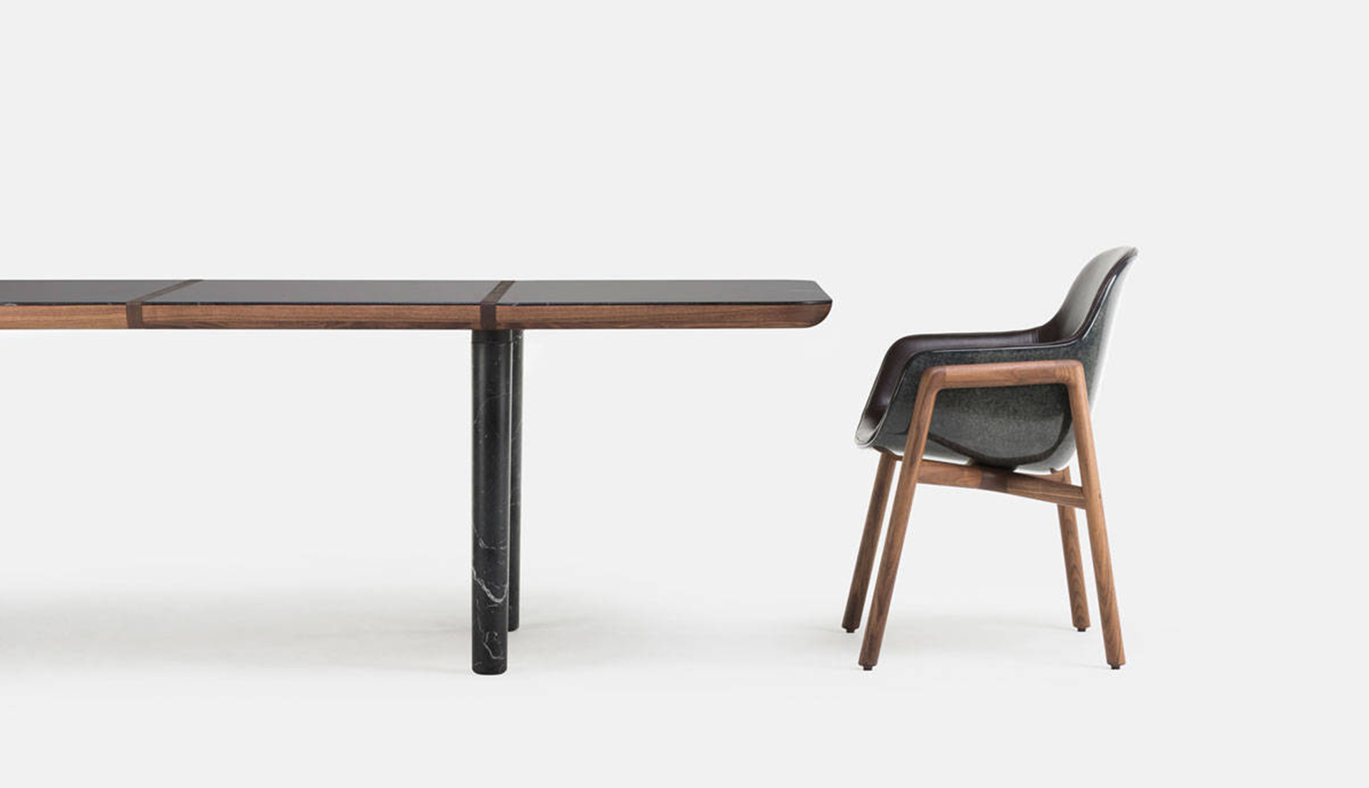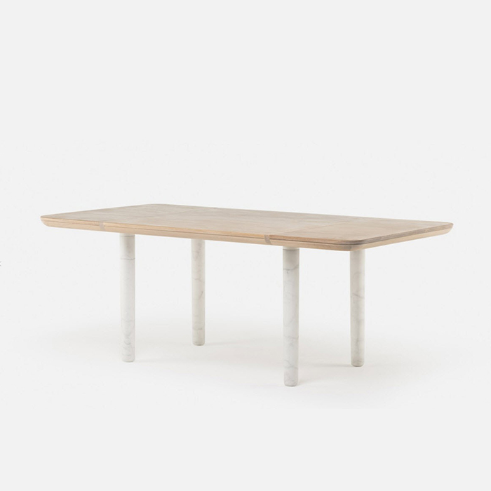 Marlon是一个表以低调的形式,突出了材料对比的桌子。在坚实的硬木或大理石桌面基础上配上细长大理石腿,看起来很轻,实际却非常强健。每个桌面由许多段组成,在这些部分相交的地方创建有趣的设计细节。由Luca Nichetto设计,De La Espada公司制造。