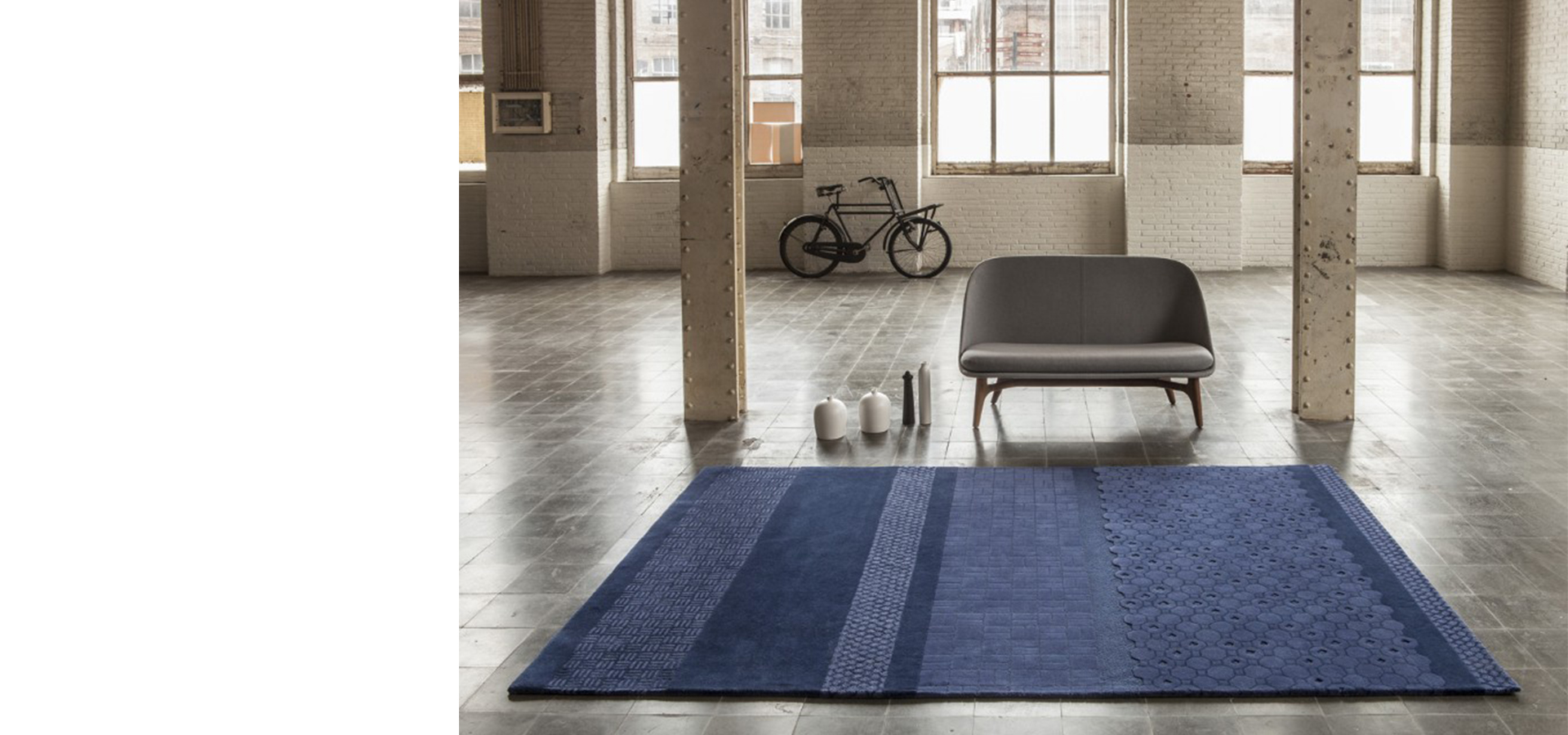 Nanimarquina这款地毯的灵感来源于上海街头的地砖图案,一个人们日常生活离不开的地方。把这个地毯系列命名为”街”,一如这个字体现的城市精髓…周始运转,折衷的花纹,从细微的灯光影射出来的充满活力的光,影,色,和这个城市的繁华。<br/>“街””字是由部首字和音标组成的。Neri & Hu说,汉字中的“街”字被描绘成一个交叉路口,在十字路口唤起“生命”,而中心部分由两个“土”字组成,“土”字的表意文字在陶匠轮子上的粘土……与该系列中Neri & Hu使用的陶瓷颜色之间的联系。”进而呈现100%新羊毛的手工地毯。
