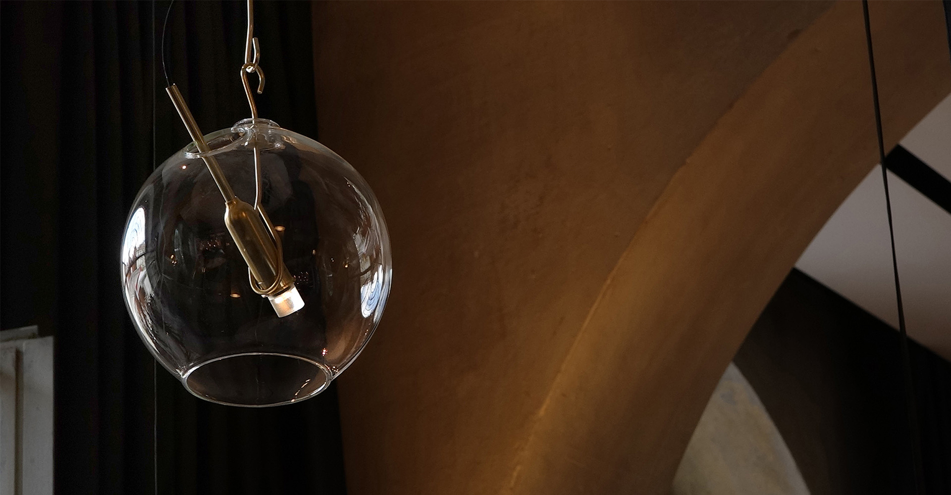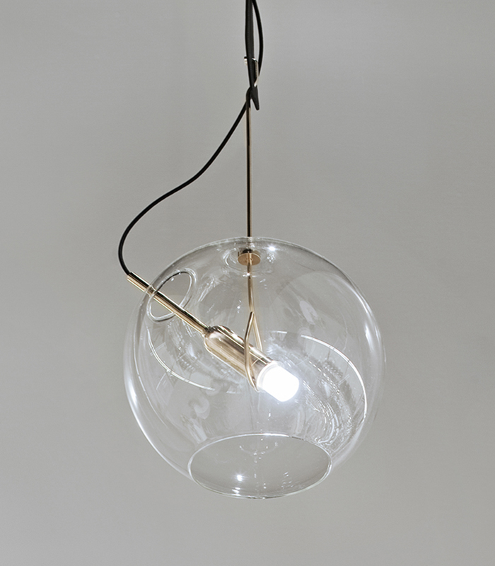 意大利著名灯具品牌Viabizzuno与Neri & Hu如恩设计合作,如恩设计将关注的焦点还给了灯源本身,纵使脆弱易碎,但仍旧被我们视作无价而珍贵的元素。通过严谨精密的设计和工艺,精细的电线和灯泡由皮质挂带和铜勾稳固地悬挂起来,由透明玻璃外壳笼罩的灯源散发出熠熠光辉。