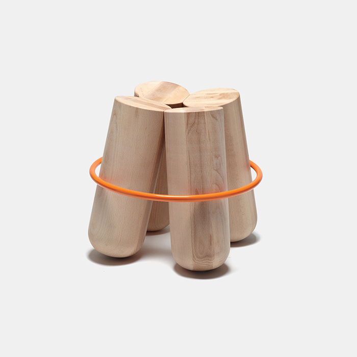 Bolt Stool由Note Design Studio为La Chance打造。它是一把具有代表性的凳子。四根木头和金属圈形成的组合,造型独特,材质上粗旷和精致的对比使得此产品具有很高的辨识度,让人过目难忘。它的外观容易让人觉得它只是一件装饰性很强的作品,但实际上它有着令人惊讶的舒适度。
