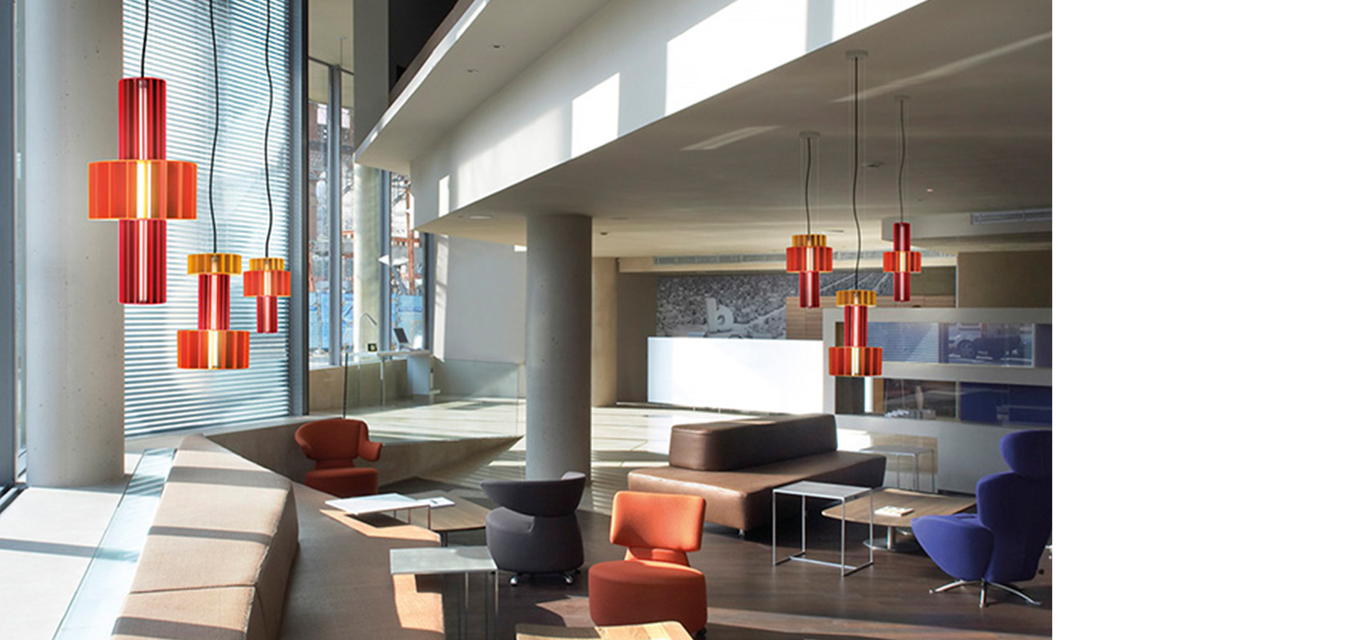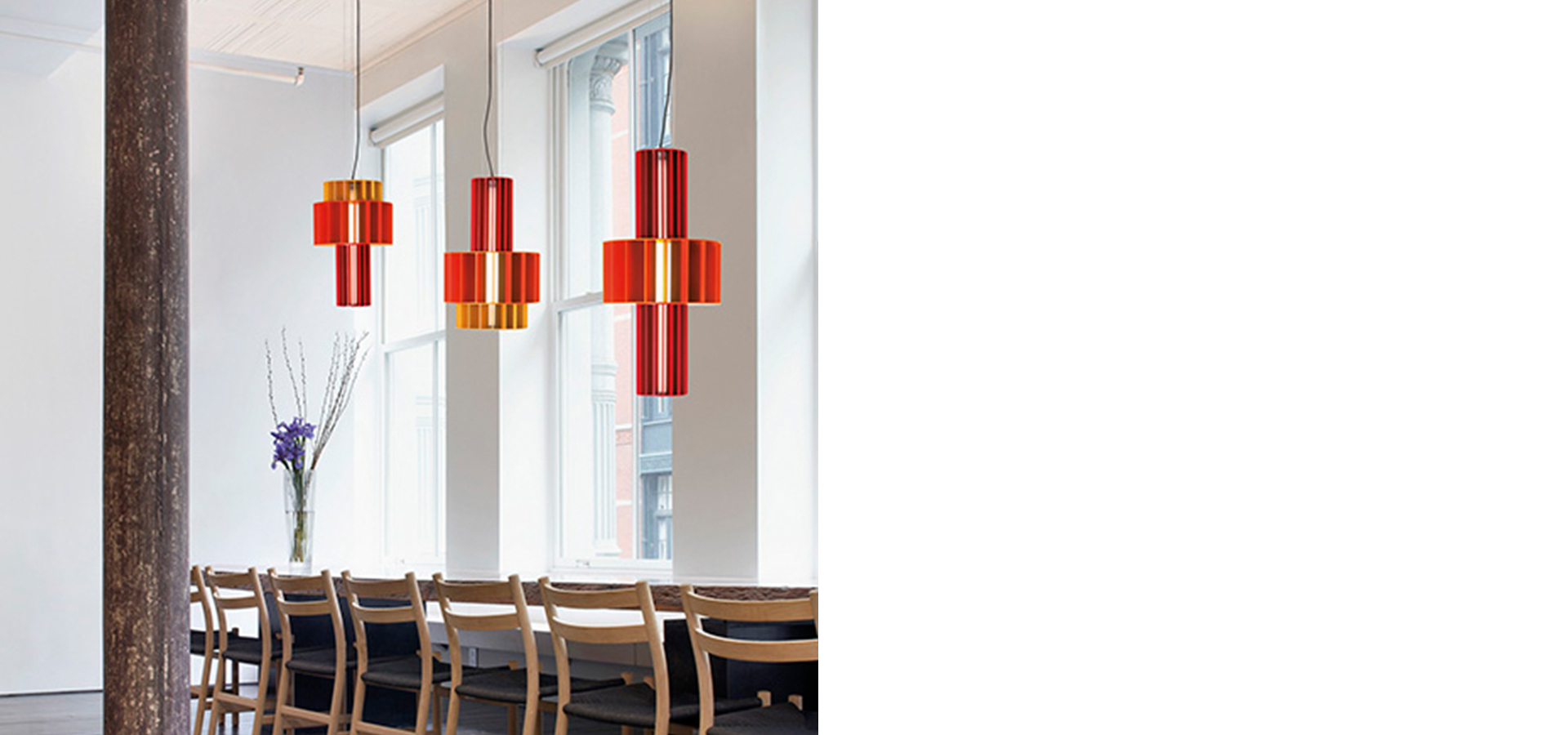 Stephen Burks为Parachilna设计的Babel是一组融合力量和灵活性的吊灯。该组合由四个形状独特的圆柱体(半径分别为60厘米、80厘米、80厘米和120厘米)组成,可以通过多种不同的搭配方式改变组合形状。<br/>Babel提供了两种照明选项:温暖的,与环境光相融合的LED灯光或伴随环境光垂直向下的额外光源。