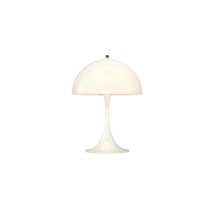 Verner Panton 1971年设计的Panthella系列桌灯,落地灯,丹麦品牌Louis Poulsen 出品。桌灯底座既可作为固定使用,同时也可作为反光部分,光源隐藏在奶油白色亚克力灯罩里,喇叭形底座反射光同时增加整个灯具的美感。落地灯搭配苗条的灯杆,简洁古典。