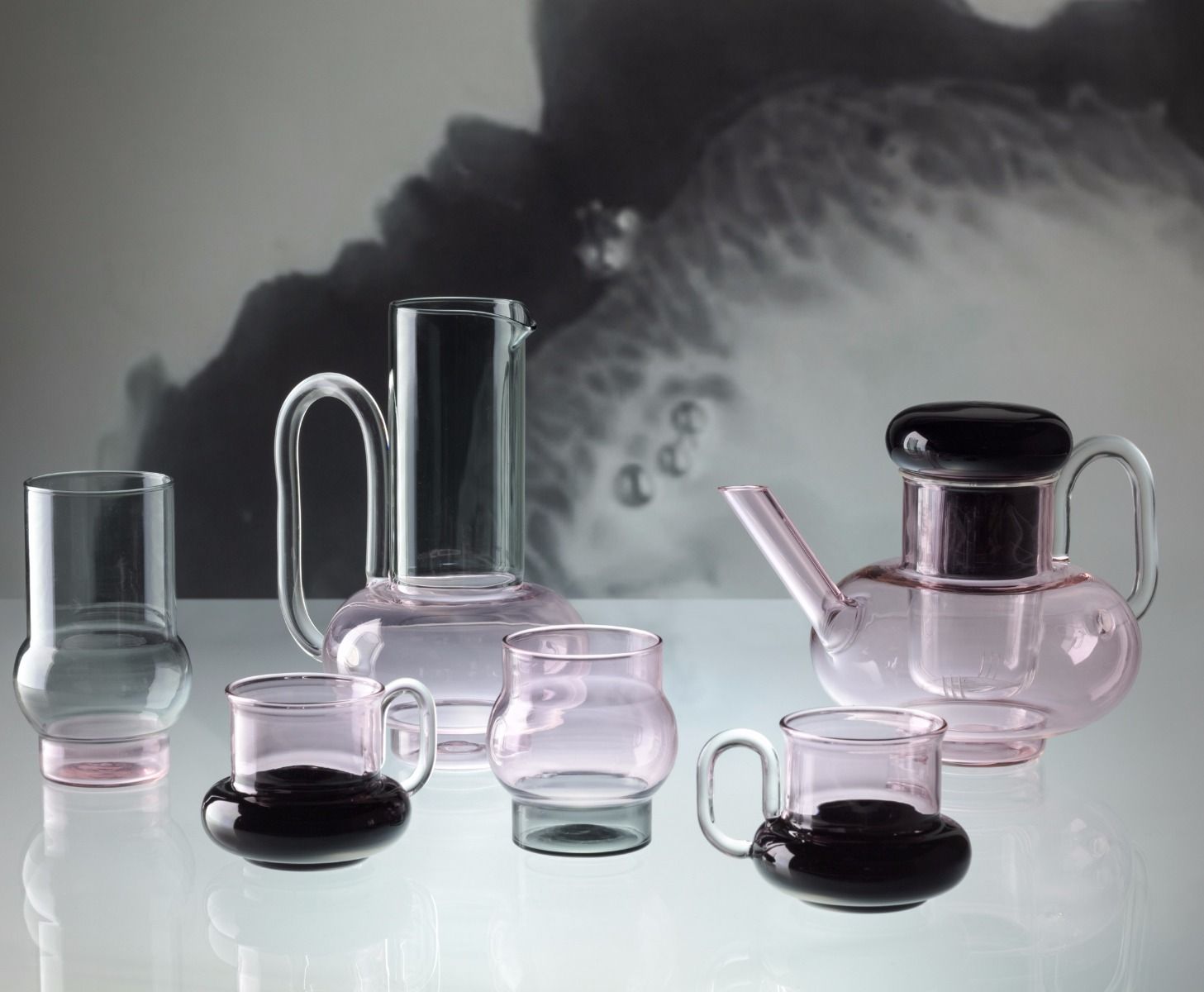 With these articles for measuring, brewing, steaming, cooling, pouring and preserving we are exploring the transformative alchemy of curious instruments and chemical reactions. Inspired by laboratory apparatus, Bump is an exercise in the manipulation of the conical, spherical and tubular building blocks that we love to play with, of double walled glassmaking and a play in transparency and translucence.Hand-wash in warm soapy water and dry with a soft cloth. Suitable for use with food. Always rinse before use. Not dish-washer safe. Do not use abrasive agents as this will damage the surface. The products are hand made and variations will occur. Colour may change over time due to the character of the material. Bump Jug has a capacity of 750mL.