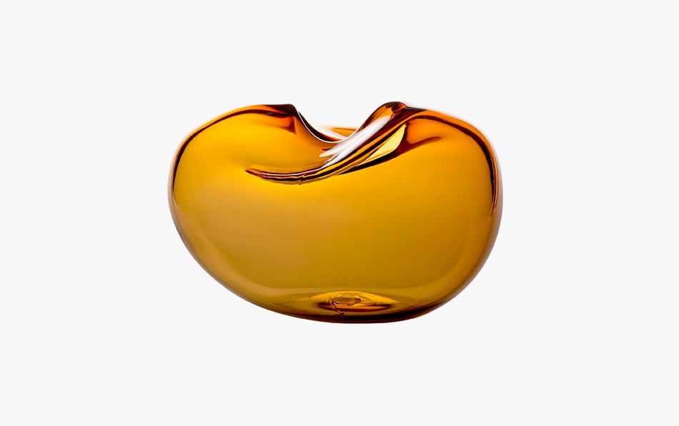Vase: Bold organic shapes characterize Hume's work, with an emphasis on jewel-bright colour. Each "Pebble-caillou" is handmade, and unusually for glass, has an obvious 'touch' of the hand in its gentle form.