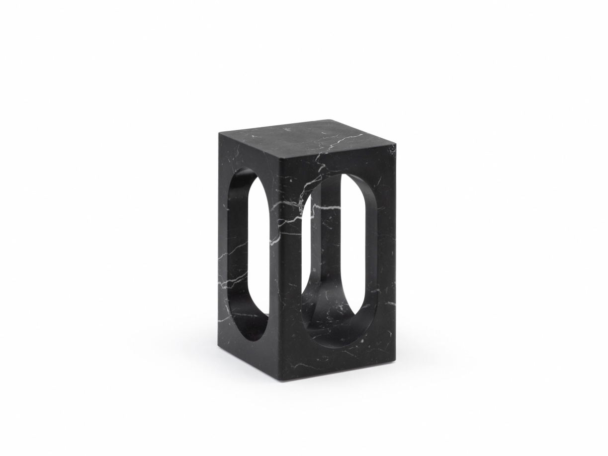 Carlo 是一款以古典材料和形式设计的雕塑感边桌。桌子是用一块大理石雕刻而成,具有拱形的屋顶和底部的建筑质感,体现了材料的美感和力量。
