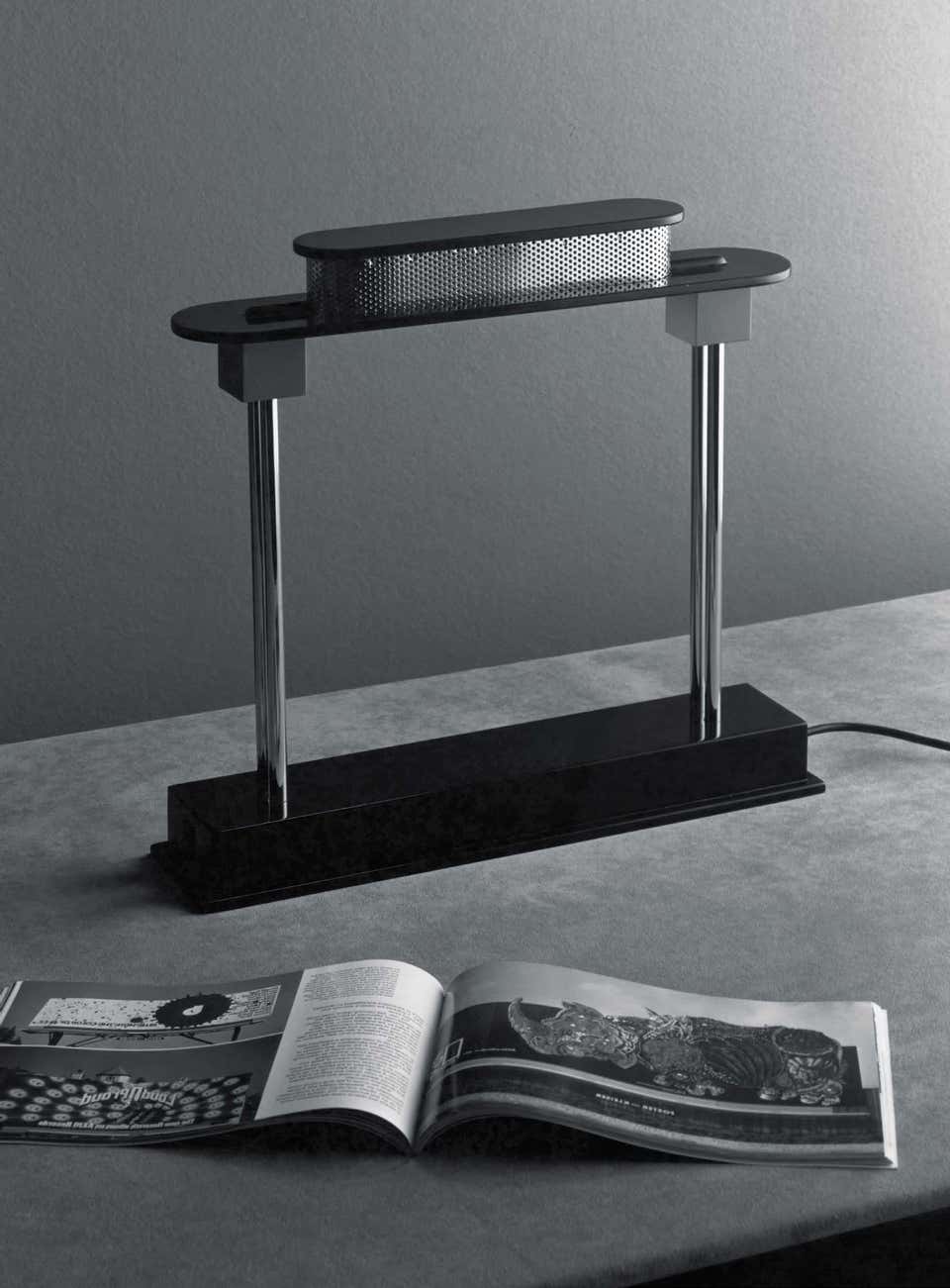 Artemide 的 Pausania LED 台灯是埃托尔•索特萨斯 ( Ettore Sottsass ) 1983 年经典设计的改良版,具有相同的结构和绿色设计,现在改用 LED 光源。黑色树脂底座支撑着两个铝制支撑杆,这些支撑杆将绿色合成漫射器固定在上方,从而产生了直射光,其灵感来自原始设计 “ Bankers Lamp ” ( 银行家灯 ) 的外观和功能。
