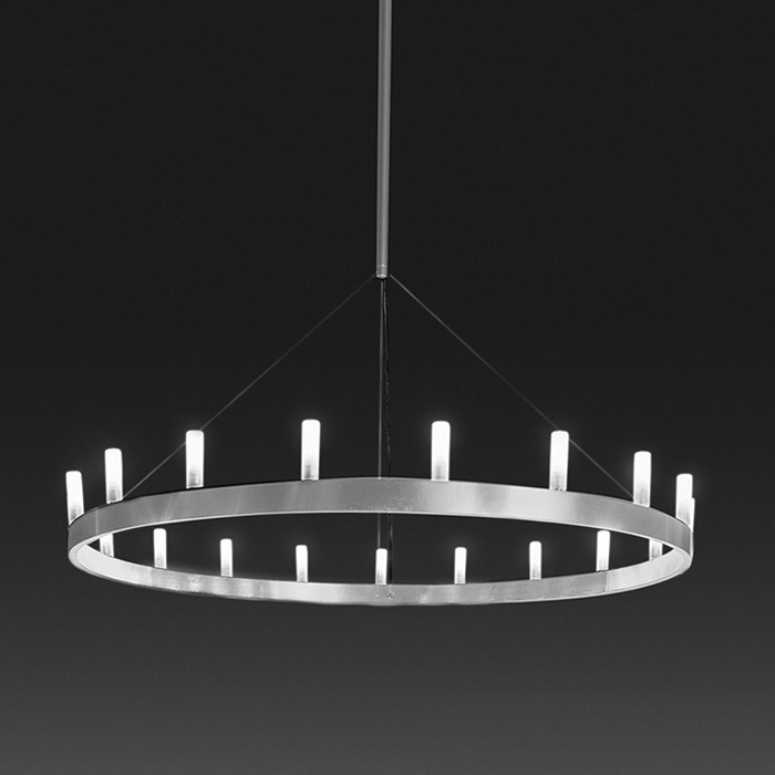 由David chipperfield为Fontana Arte设计吊灯受Arthur国王的王冠启发。它有两种颜色可供选择,带有两个同心圆或者单一版本。