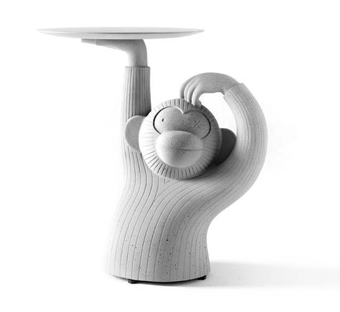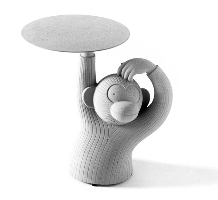 Monkey Side Table 猴得意小桌,是BD Barcelona最受欢迎的户外系列Gardenias的亮点配件之一。以往Jaime Hayon的绘画天赋只能表现在小件家饰以及艺术品上,但这次BD为了完成他“所绘及所得”的理念,独家开发了特殊的模具,以建筑混凝土来表现这件生动可爱的猴子雕塑边角桌。