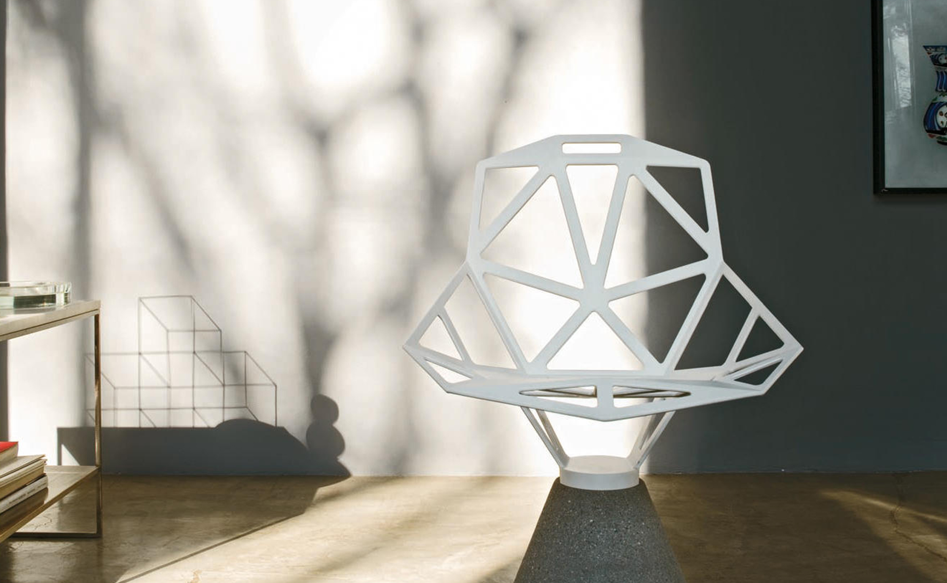 被誉为德国精简主义设计大师的Konstantin Grcic, 出生在德国慕尼黑,自从他意外地在Magis的工厂里发现了铸铝之后,便以此材质作为结构支架,甚至进一步设计出充满前卫摩登、以铸铝为主素材的作品,Chair_one就是其中较具代表性的一件。