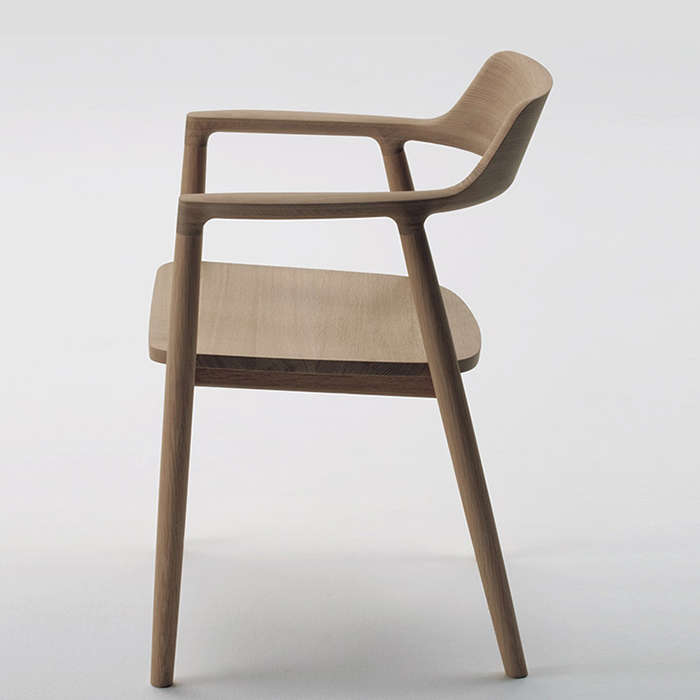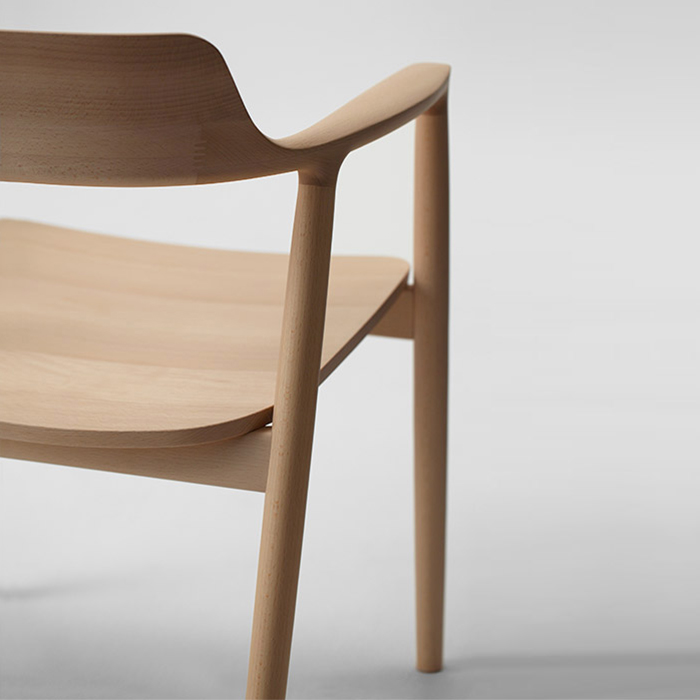 深泽直人Naoto Fukasawa在这张椅子上延续了过往强调使用者直觉的减法设计,还原了木工单椅的灵魂,也就是曲木与榫接工艺。而为了开发广岛椅的特殊椅背,Maruni 还设计出独家精密 NC 切割机具,完美再现了深泽直人要求的弧形曲线,最后再由专业工匠来进行细緻的组装、打磨与涂装。<br/>Maruni 对木工吹毛求疵几近偏执的做法,在某些木作爱好者眼裡或许表现得太过精准,但如果是追求设计物件必要完美极致的买家,就相当合适入手。坐上浅笑般微弯的榉木椅座,枕上经过精密计算,符合人体的倾斜椅背,最后双臂再搭上丝滑腻润,轻柔包覆的扶手,体验最讲究细节的日本人打造的,无微不至的作品。