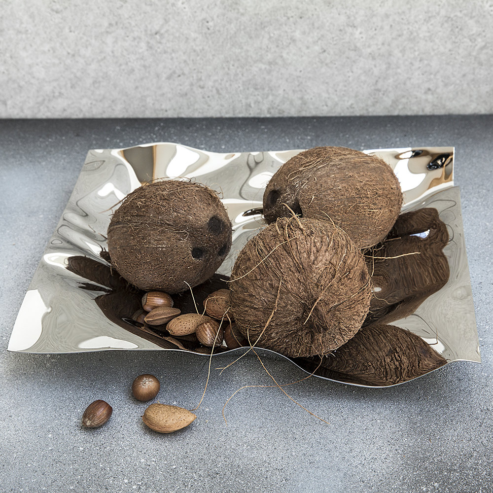 Verner Panton was one of the great design iconoclasts of the modern era. His works helped put Denmark on the map as a capital of cutting edge interiors and continue to influence today's top creatives. First produced in silver in 1988, the design is now available in stainless steel. Sometimes known by the evocative nickname "Car Crash," Panton's tray makes an eye-catching and beautiful centrepiece or serving tray. An outstanding heritage, rendered in stainless steel for the first time.