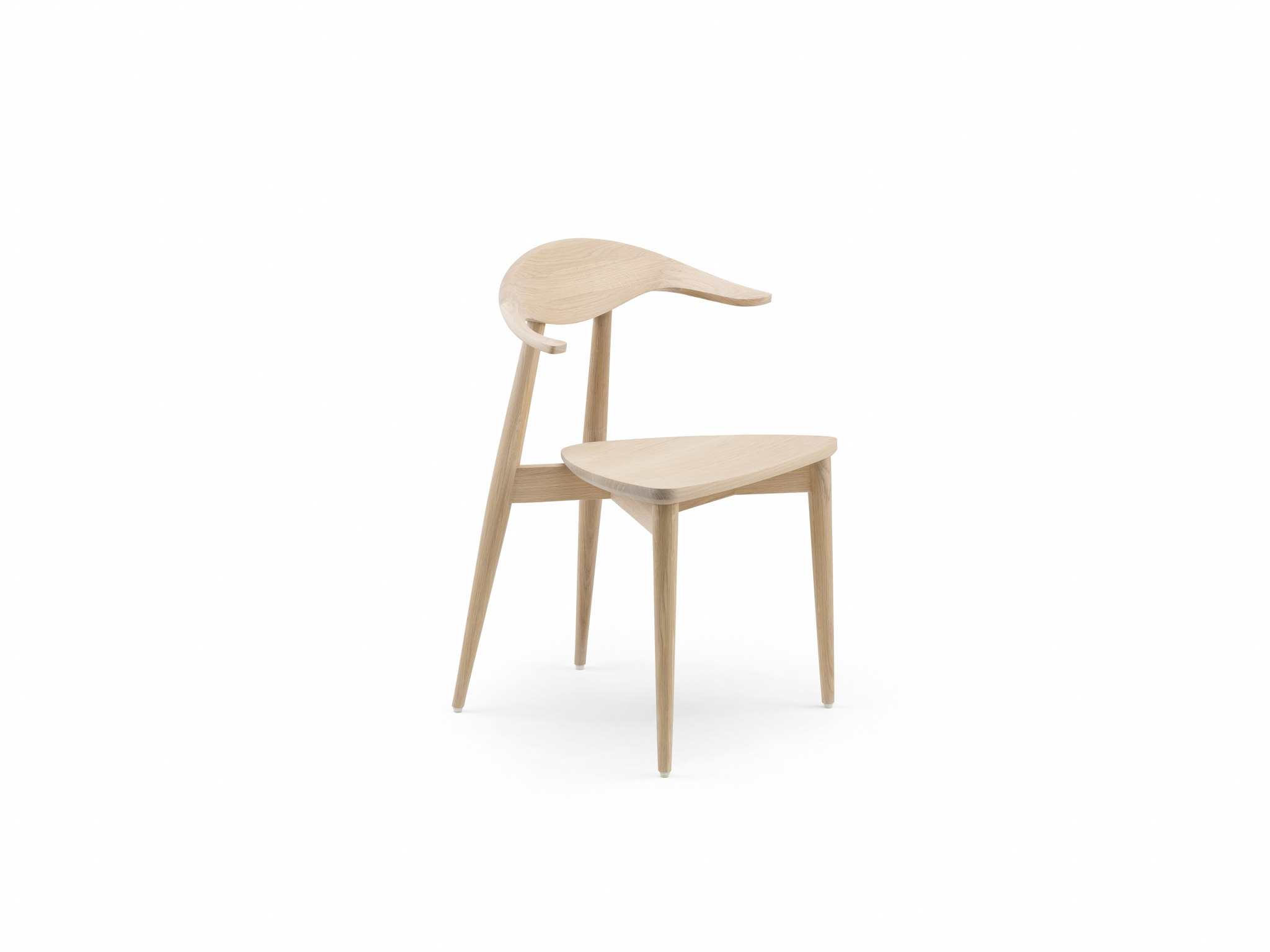 Matthew Hilton 的经典设计 Manta,最初构想是使用弯曲的胶合板制成。2020 年重新设计, 完全由实木制成。木雕实木靠背配有专门为这款椅子开发设计的扶手。椅子的曲面增强强调了材料的天然纹理变化。