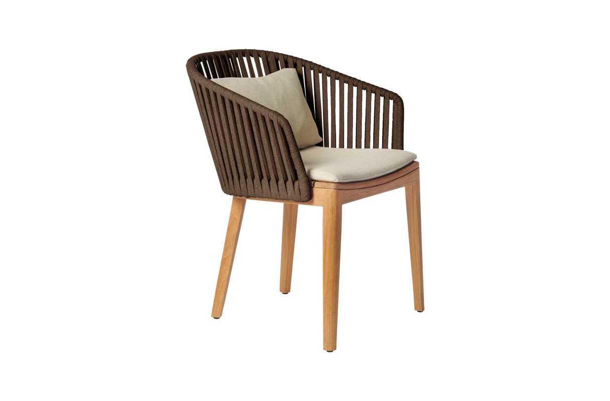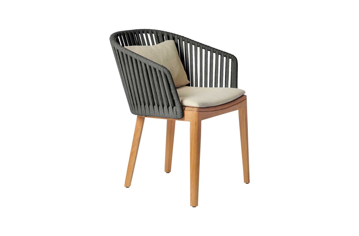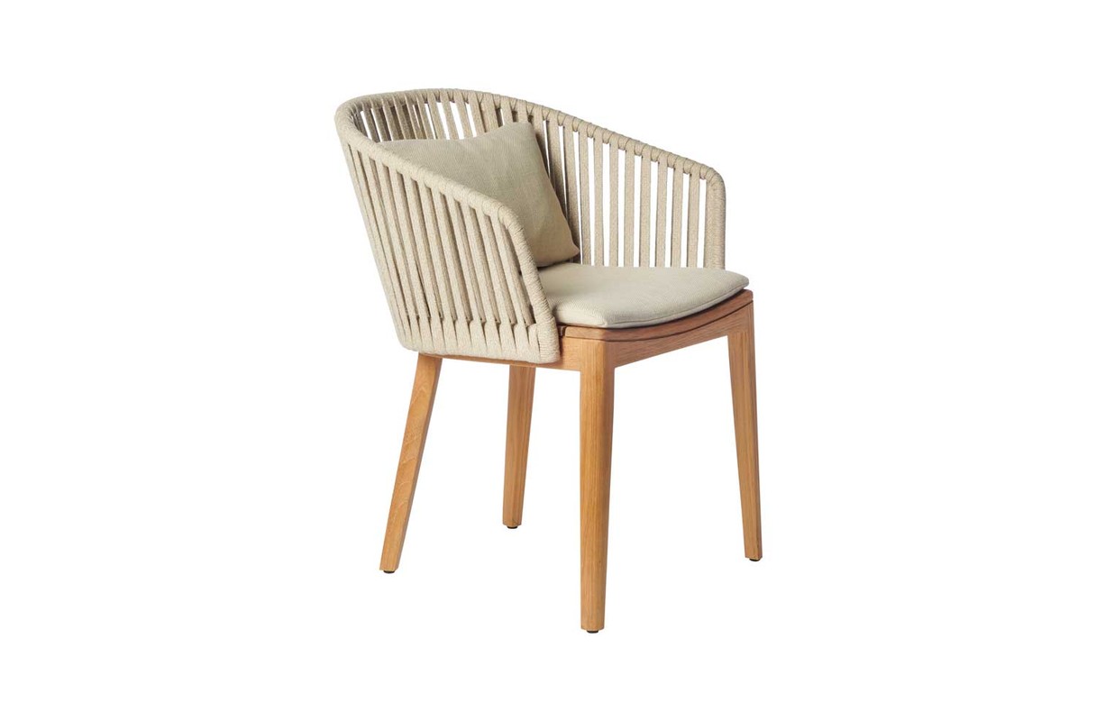 Mood 系列的通风设计及其柚木和手工编织背面的温暖组合将立即在您的露台上营造出亲密的氛围。耐用柚木的圆形设计使椅子具有温暖友好的色调。Tricord 的编织具有非常柔软的触感,但仍然可以抵抗所有天气条件。Tribù 开发了一系列适合任何类型的户外环境的自然颜色。靠垫有各种款式可供选择,以满足各种品味需求。
