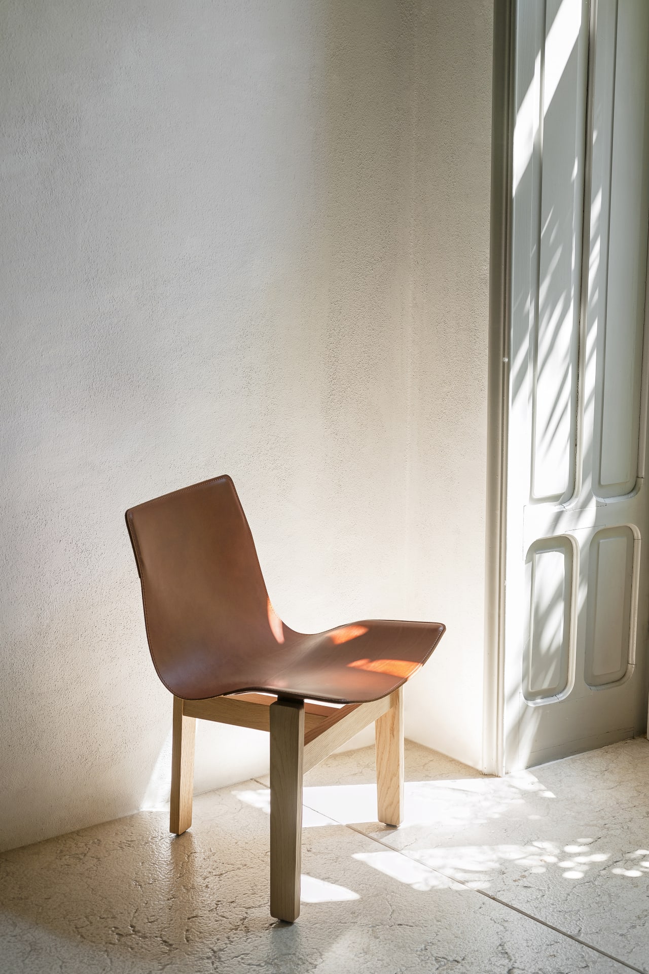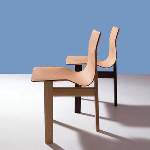 这是一款舒适的椅子,由木材和皮革等传统材料制成,具有简单但优雅的构造细节。三条长方形腿的凳子,两侧有两条前腿,后面有一条中心腿,由一个坚固的的T形十字架结构连接在一起,这种结构与传统的四条腿的椅子一样稳固。 在Tre 3中,高的那根后腿上放置了一块皮革,轻轻地下降,使靠背和座椅平滑无缝地成形。这是对之前北欧设计领军人物设计的一款椅子的重新解读。