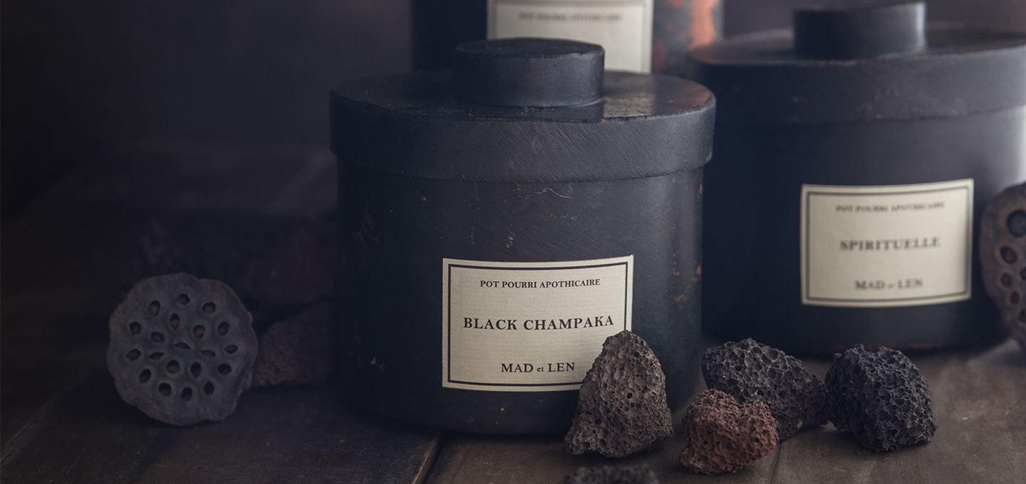 Mad et Len is an experimental fragrance and homewares brand that takes inspiration from earth's natural surroundings. Once avid globetrotters, Sandra and Alexandre – the creative driving force behind Mad et Len – live and work in the French alps while recalling the peaceful atmospheres and rough landscapes from their travels through the brand's varied collections.